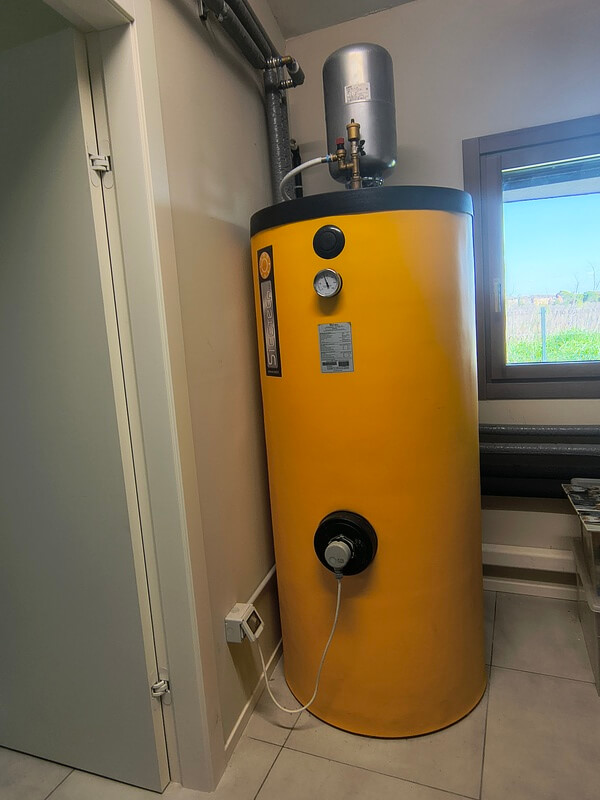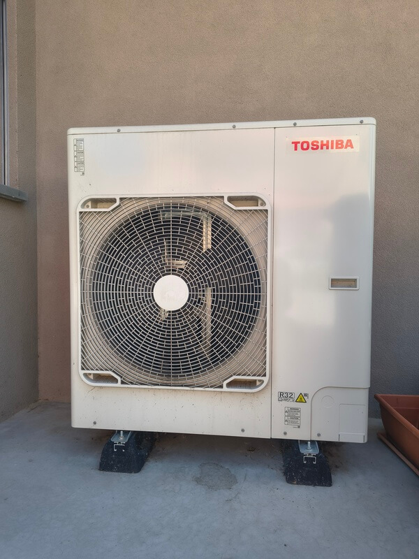 Pompa di calore per riscaldamento radiante e raffrescamento tramite unità idroniche canalizzate e produzione di acqua calda sanitaria. Impianto di ricircolo dell'aria (VMC).